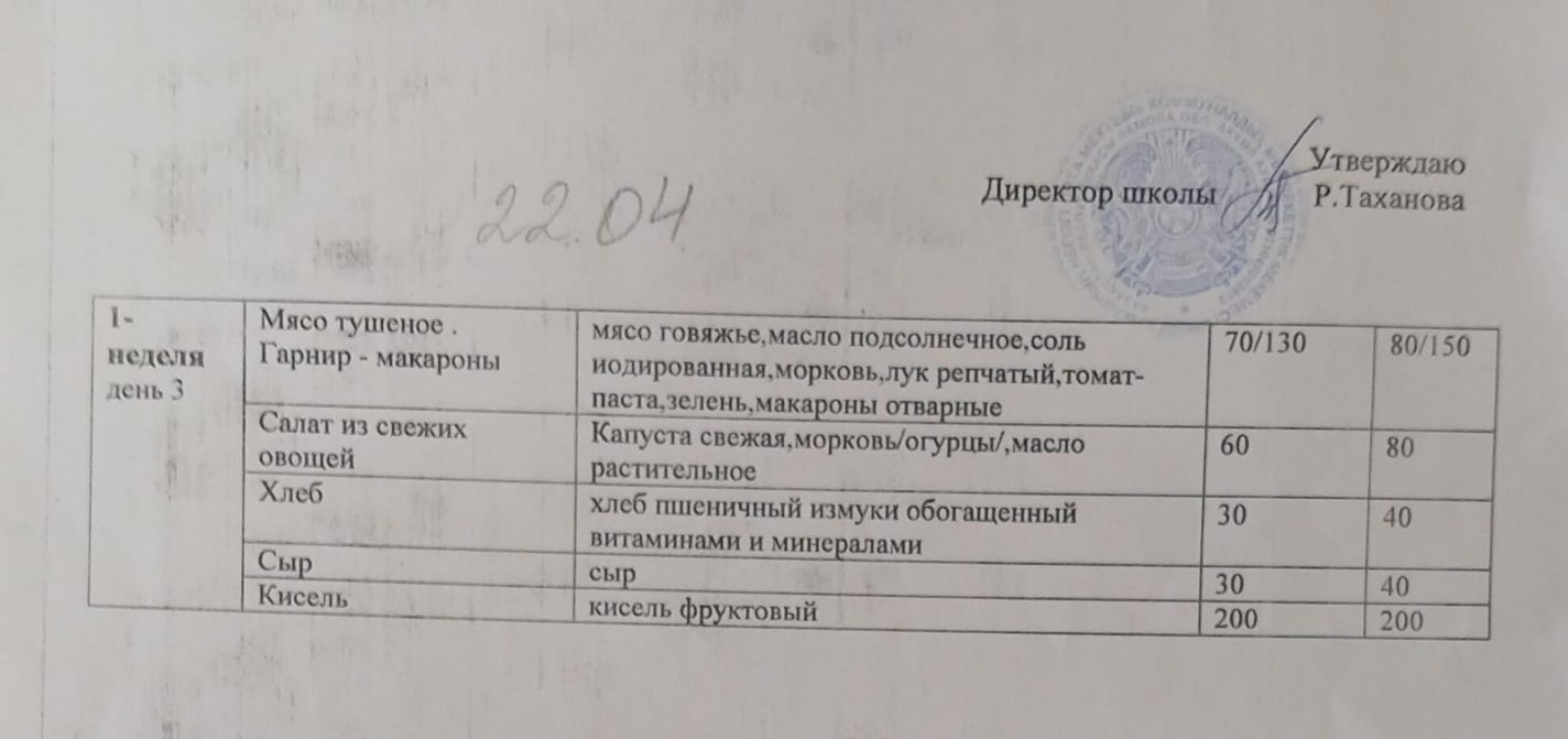 22.04.2026 Ас мәзірі