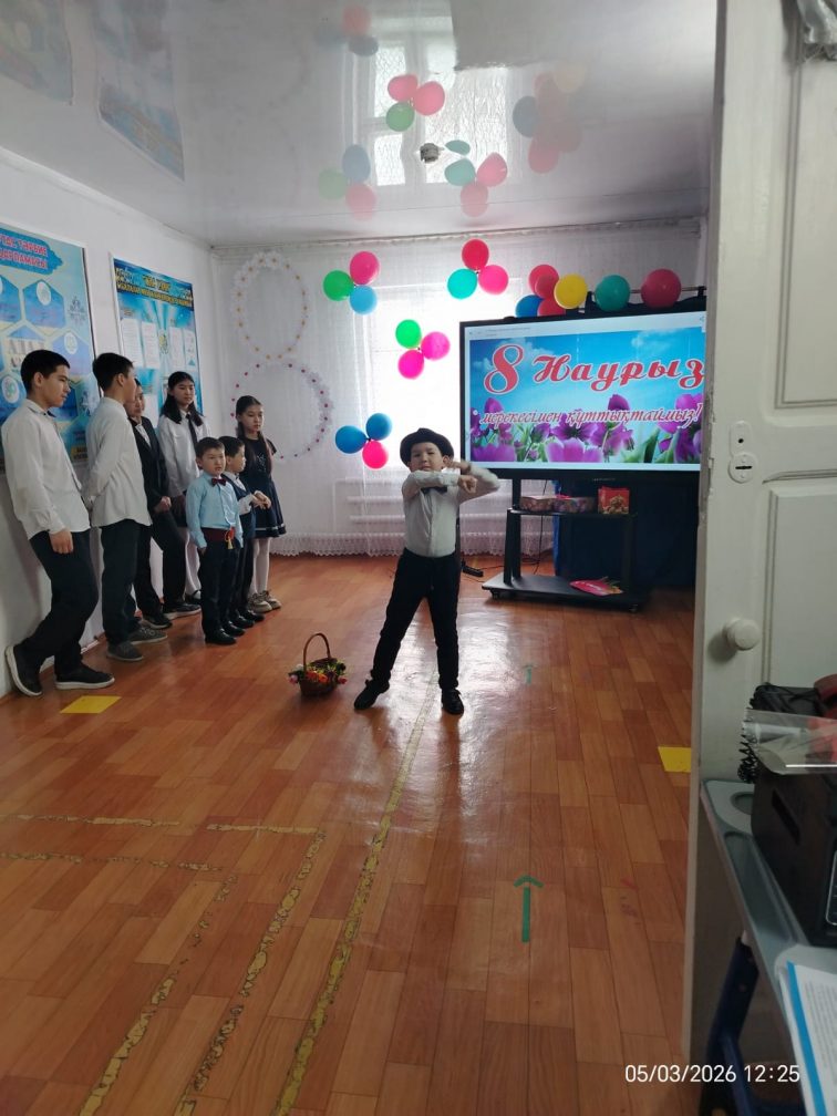 Бүгін мектебімізде 8-наурыз – Халықаралық әйелдер күніне орай мерекелік іс-шара өткізілді. Іс-шараның мақсаты – аналарға, әжелерге және ұстаздарға деген құрметті арттыру, оқушылардың сыйластық пен ізеттілік қасиеттерін қалыптастыру, әйел азаматтардың қоғамдағы рөлін дәріптеу. Мерекелік кеш барысында оқушылар ән айтып, би билеп, тақпақтар айтып, аналар мен ұстаздарға жылы лебіздерін білдірді. Кеш өте әсерлі әрі көтеріңкі көңіл-күйде өтті.